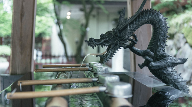 每一个神社前都会有这样一个洗手的地方,不过大多简洁,瑞凤殿中的这个倒是有点特别,还是中国龙的形象。