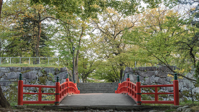 盛岡城迹公园是利用北上川和中津川交汇处的丘陵地带所建造的盛岡城城址所建的公园,被选为一百个日本都市公园之一。本公园因为位于岩手县盛岡市,也曾被称为“不来方城”,由南部信直营建,完成于1633年。唯一留下来的石垣是用盛岡所产的花岗岩堆积起来。