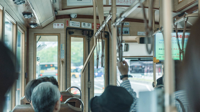 首先,这巴士真的长得很好看。其次,巴士内部,也长得很好看。发现一个有趣的现象,日本及时是老人家,也喜欢座着观光巴士自由行,棒棒哒。