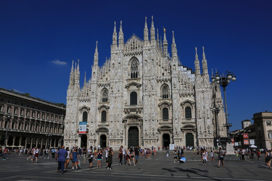 午休过后,乘坐地铁直接到米兰大教堂,虽然已看过很多教堂了,但从地铁一出来,还是不由自主的被这座哥特式建筑的教堂震撼了。米兰大教堂坐落于米兰市中心的,是米兰的标志性建筑,它始建于1387年,历经500年时间才完成。 建筑特点教堂上共有135大小尖塔,每个塔上都有一座雕像,雕刻和尖塔是哥特式建筑的特点之一,米兰大教堂把这个特点淋漓尽致的表现了出来,因此它也是世界上雕像最多的哥特式教堂,共有大理石雕像约6000多座。