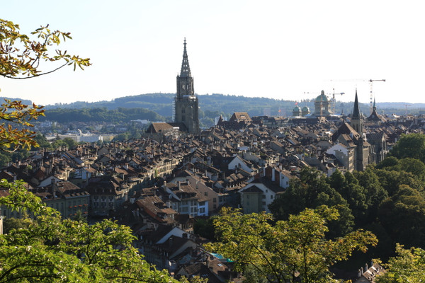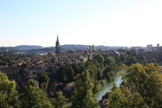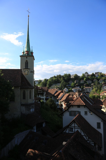 伯尔尼游览之感,伯尔尼是瑞士的首都,但他也许是最不像首都的城市,没有感觉到丝毫的政治气氛,整个城市不大,阿勒河穿城而过, 戴红帽子的古城,蓝天白云,鲜花草地,一切都是那么和谐、安静。