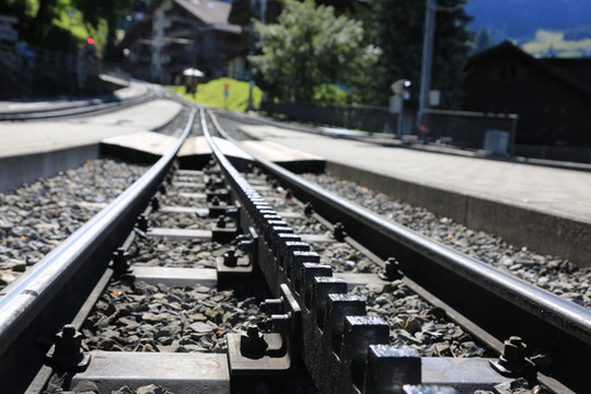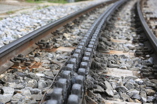 铁轨中的齿轮,紧紧地咬合,坚定地守护着这些高山列车的安全。