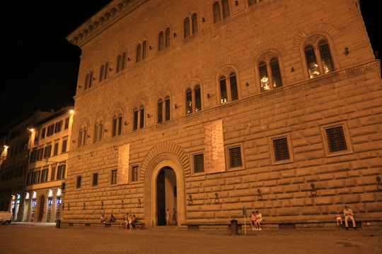 夜晚的皮蒂宫,古老、庄严。