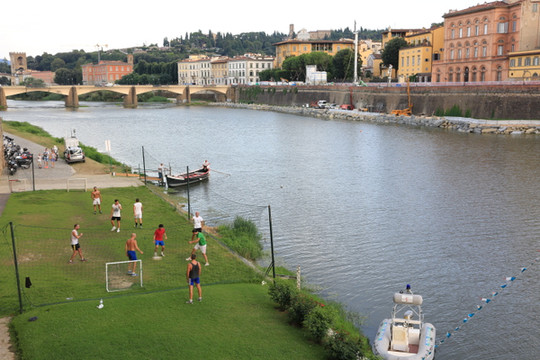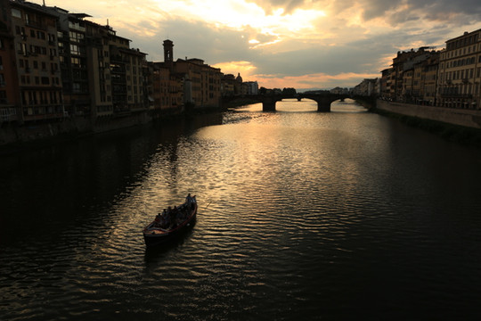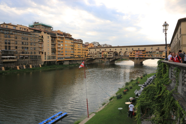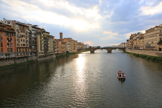 穿过美术馆即来到了佛罗伦萨的母亲河阿诺河,它贯穿佛罗伦萨老城。河上有四座上百年历史的老桥。