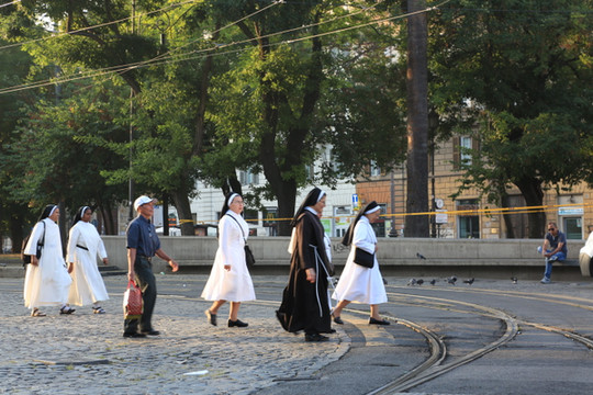 早起,在报亭购买了两日ROMA PASS,坐地铁到达梵蒂冈。由于到达较早,碰到了沐着晨光去上班的宗教人士。