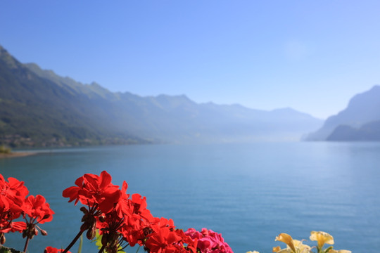 面积小于图恩湖,于是决定骑行布里恩茨湖。两湖都有专用骑行道,不得不佩服瑞士旅游设施的周全考虑和设计。