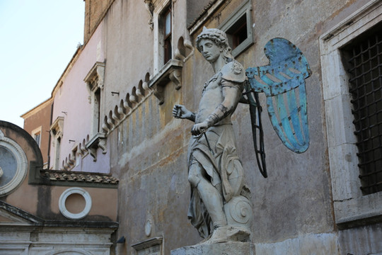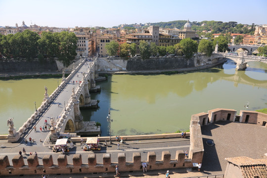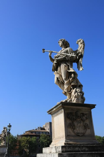 天使堡正前方,是著名的天使桥,一共有12个天使,每一个都拿着耶稣受刑的刑具。这些作品原本都是出自贝尼尼大师,后来为了保护原作,很多被搬到了博物馆中,目前桥上的只有一两个还是真品。不过我们眼拙,实在辨认不出。