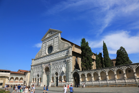 酒店一出来就是新圣母玛利亚教堂(Basilica di Santa Maria Novella),教堂的颜色类似圣母百花大教堂