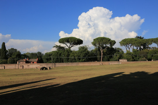 逛完浴场,已近中午,坐地铁回去午休。研究了一下地图,看到了阿比亚古道Appia Antica的介绍,阿比亚古道被誉为最有名的罗马古道之一,古道底下,是罗马最大的公共地下墓地,现在是罗马人漫步的首选地之一。坐地铁到Circo Massimo站(即卡拉卡拉浴场),再换乘公交车,步行略远。