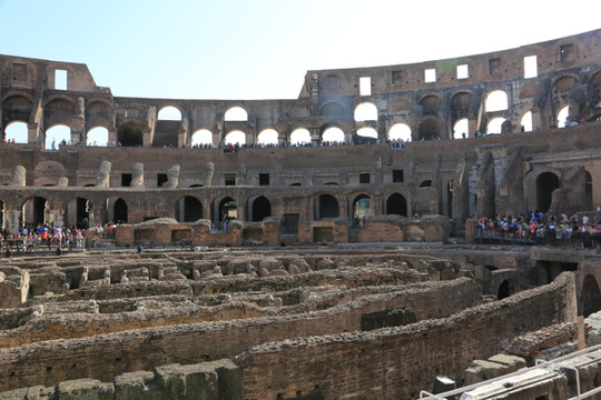 从博物馆出来,乘坐地铁先回宾馆休息。赶在斗兽场关门前(此时不用排队),乘坐地铁到达Colosseo站。斗兽场:2000多年前,有钱阶级为了观看人兽相当,专门建的场子。