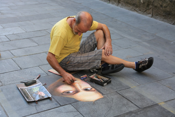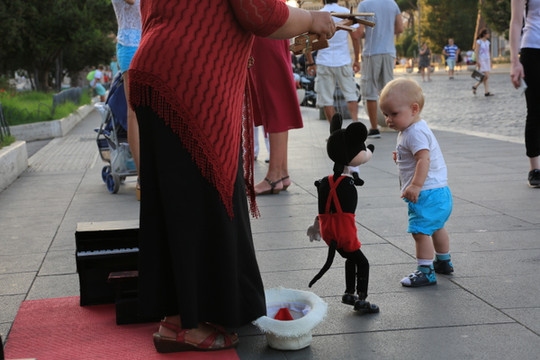 广场上卖艺的艺人。