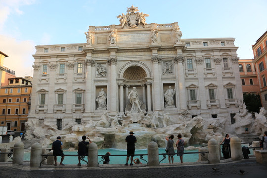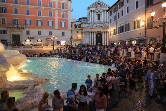 (许愿池旁拥挤的人群)