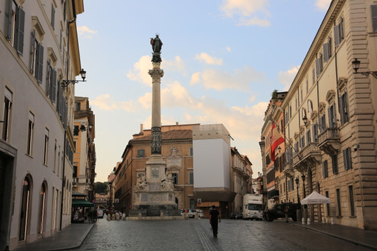 早起,坐地铁到Spagna站下车,出来即是。早晨的西班牙广场非常清静,犹记得在《罗马假日》中,公主坐在台阶上,吃着冰糕,看着在喷泉中戏耍的孩子。