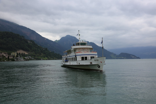 LAKE LUCERNE 的码头,有不同游船路线,可坐船到瑞吉山。