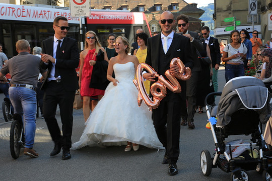 碰上一对从教堂走出的新人,为他们祝福。