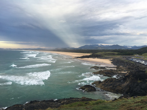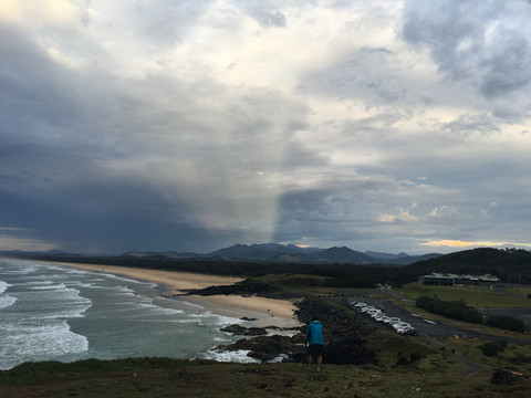 HWY),第一个目的地拜伦湾,2多小时候到达。拜伦湾当然要先去澳洲本土最东边的拜伦角、看拜伦角灯塔。开车上去交了一次停车费。这在澳洲还是很少见的,7澳币,没有听懂可以停多长时间。反正我们是1个多小时下来,天气早已渐渐阴沉。
