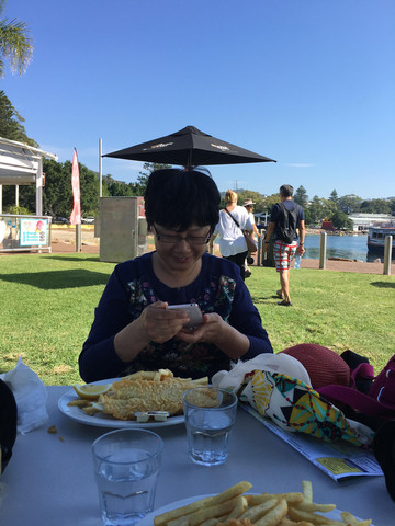 斯蒂芬斯港由于距离悉尼已经很近了,大约2个小时的车程,因此,可以看到许多的旅游大巴,中国人也多了起来。两位男士突发奇想,想坐船去看海豚,估算了一下,觉得到悉尼还车时间应该够,只是要紧张些,一次乐得让他们高兴一下,他们坐船,我们吃东西。这次决定是我们本次旅游的最大一次失误。