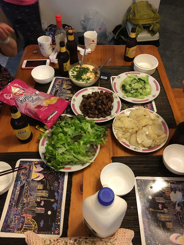 IBIS快捷酒店做饭是不可能了,于是我们买了快餐食品,在酒店外的桌子上也吃得愉快高兴。
