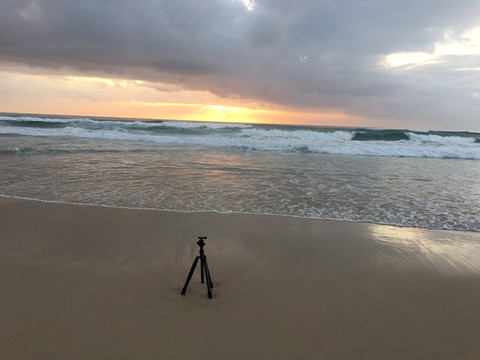 早晨,日出前,我们在科夫斯港湾灯塔山瞭望台拍摄照片,尽管天气依然阴沉,但却照了非常明显的光束。