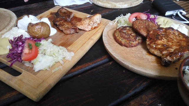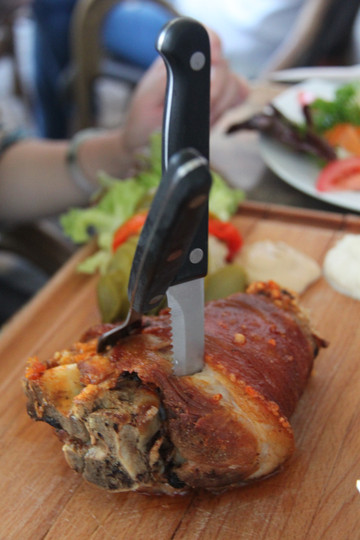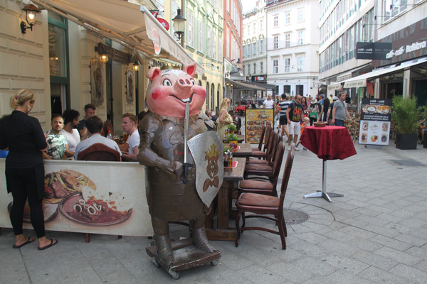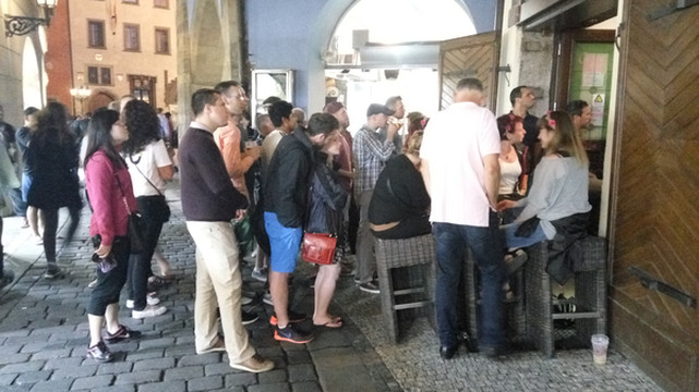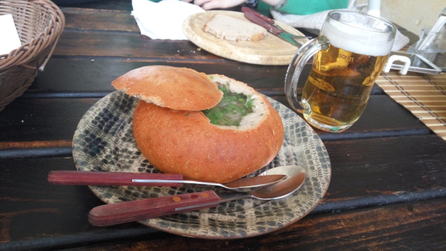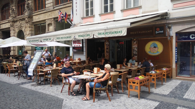 我们挑了克拉姆加拉斯宫对门的一家Bohemia尝试捷餐,299克朗的烟熏猪排味道上佳,一扎啤酒,三人轮番开饮才消耗完。