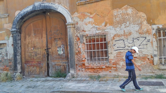 ◎1848年民族英雄科苏特雕像背后的大楼,枪炮弹眼赫然在目。