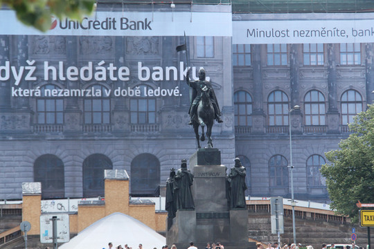 火车站开设有Student Agency窗口,花500克朗预购好去CK小镇的车票,然后去往两个街区外的瓦茨拉夫广场 (Vaclavske namesti),广场南端的国家博物馆正在大修,武士铜雕所衬背景已找不到89年“天鹅绒革命”和68年“布拉格之春”的现场画面感。