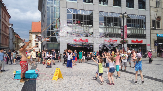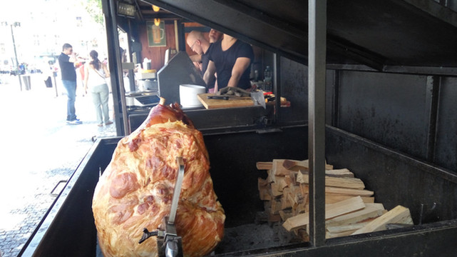 旧城广场 (Staro-mestske namesti) 满是热闹,磨得发亮的弹格路,烟熏的猪排猪肘滋滋作响肉香袭人。