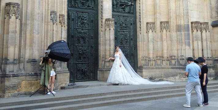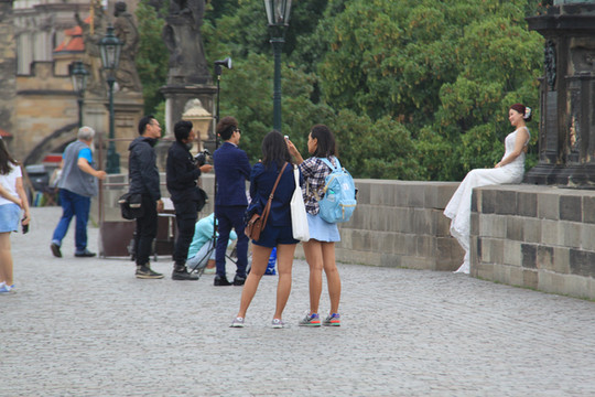 ◎打上浪漫烙印的布拉格,各处可见拍摄婚纱照的华人,港台内地都有。
