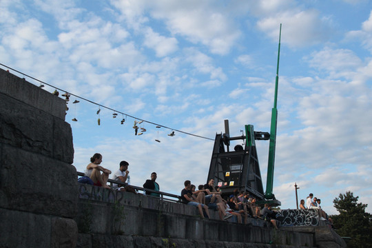 公园像是举办露天音乐节的所在,台阶上遍布各色涂鸦,滑板少年倏忽而过,巨型节拍器下三三两两的年轻人灌几口啤酒,静观被夕阳渲成金色的古老建筑下伏尔塔瓦河缓缓北流。