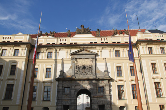 布拉格城堡 (Prazsky hrad) 内有昔日波希米亚王宫和王室御用的圣维塔大教堂,但已到谢客时间。