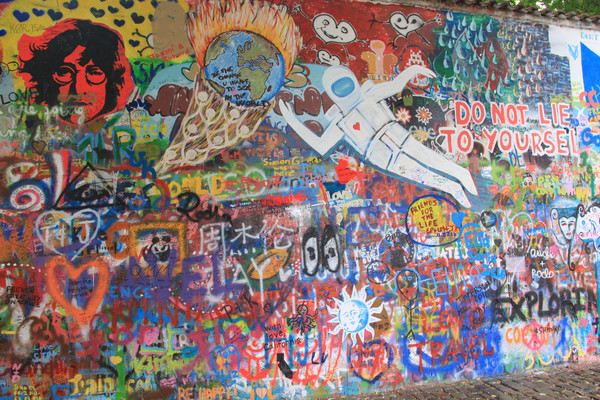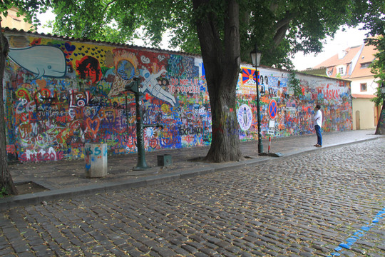 伏尔塔瓦西岸著名的列侬墙,遍布世界各地文青白左的涂鸦,在当年反抗集权文化的icon地标看到反战口号或ZD旗帜都不奇怪,但周杰伦和刘惜君的大名乍现墙上就略显违和。