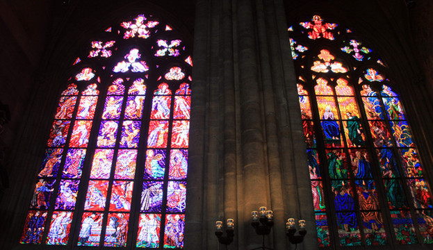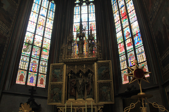 新艺术大师运动穆哈 (Mucha) 绘制的彩色玻窗是20世纪为教堂添加的亮点。