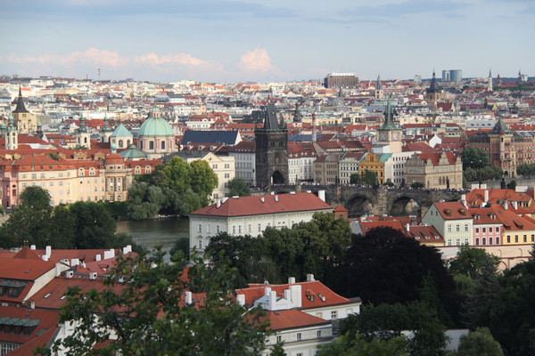 在莱特纳公园的山上望向布拉格,阳光的镀染使得全城橙红色屋顶下的白墙顿显一片金色。金色布拉格,名不虚传。