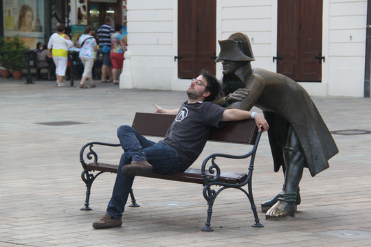 恍惚间,两个中东或印度模样的男子走过来,啪的在我们桌上摊开一张破旧地图,嘴里说着听不懂的疑似英语,指着某个地标做问路状。我们以前在日内瓦遭遇过所谓巴西人的骗局,情知来者不善,就坚决说we don't know。僵持一分钟,他们退了,嘴上还在叽叽咕咕,调动着我们的目光。