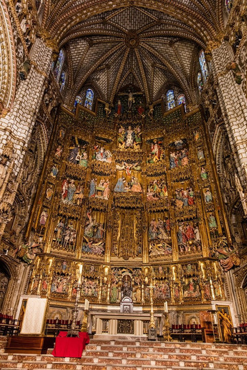 托莱多大教堂地位非凡,托莱多主教座堂是西班牙天主教托莱多总教区的主教座堂,也是西班牙的大主教教堂,是西班牙三座13世纪哥特式主教座堂之一,根据教会传统,该教区于1世纪由圣雅各创立。313年在《米兰敕令》颁布后升格为总教区。托莱多总主教被尊为西班牙主教长。