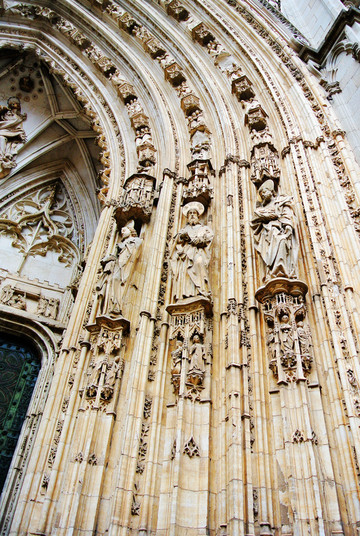 大教堂由五座哥特式殿堂组成,包括王室座堂、主礼拜堂、大教堂博物馆 等,殿堂之间以交叉的宽广的回廊相连。