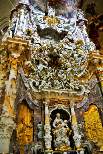 主祭坛的浮雕号称是世界上最大的,共有四排七列二十八幅宝石镶嵌的黄金浮雕,2.4吨黄金打造,描述的是耶稣基督的生平。制作祭坛的工匠Dancrat穷其一生仅仅造了这一件。不得不佩服古人的耐心和毅力。