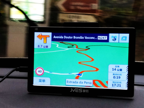 由于天气条件不是很好,山路也比较难开,差点就放弃罗卡角了。看看这导航图,曲曲折折盘山而上,还下着雨,好几次我们都以为开错了,坚持了40分钟,终于到了。