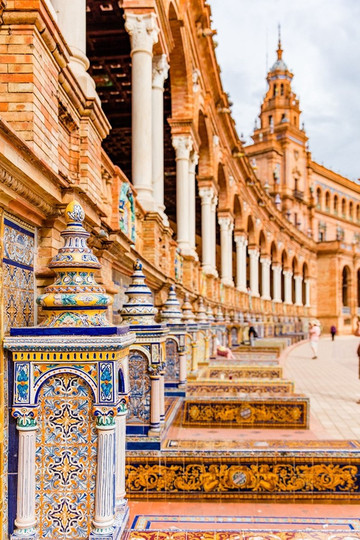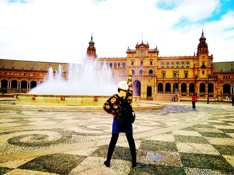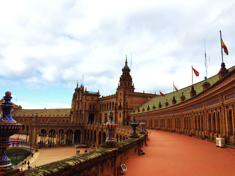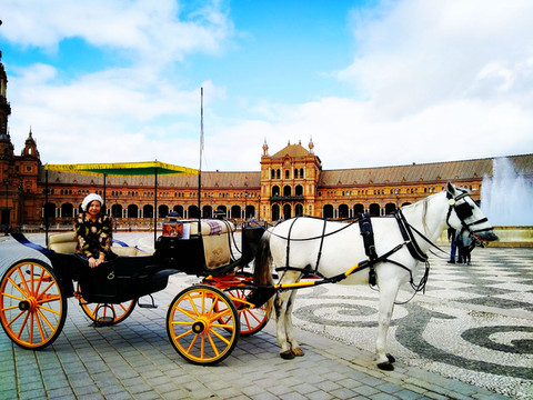 坐观光马车到西班牙广场,这是西班牙全国最大最开阔、造型也最独特的广场,1929年为伊比利亚•美洲世界博览会而建。是《阿拉伯的圣劳伦斯》曾在此取景。