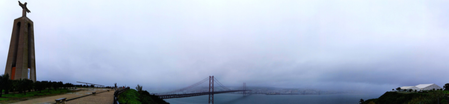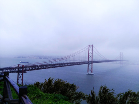 一大早冒着大风大雨去了耶稣像,还好有车。站在耶稣像处可以远眺4月25日大桥。