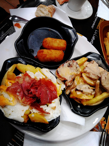 一整天都耗在阿尔罕布拉宫里,又累又饿,无意中走进La Cueva,没想到是家百年老店,火腿和肋排太赞了。