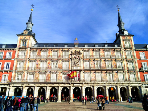 西班牙很多城市都拥有自己的,而马德里的马约尔广场,无疑是规模最大、气势最盛的一个。 马德里马约尔广场是菲里普三世在1619年主持修建的,有着独特风格的四方形广场。横向128米,纵向94米,由4层高的建筑围成。