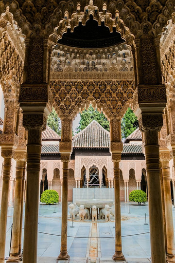 阿尔罕布拉宫的富丽堂皇与繁复精致,让人叹为观止。除城防系统外,主要建筑物是两座长方形宫院及其厅房。各厅房有图案别致的石钟乳状垂饰花纹,为阿拉伯风格的杰作。
