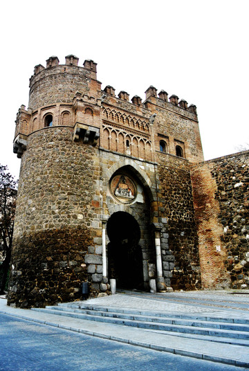 上山后先找到太阳门。太阳门是托莱多观光必不可少的,它建于13世纪,具有典型的阿拉伯风格――高大,宏伟,挺拔。之所以叫太阳门,有两种说法:一是称门上有太阳、月亮的图案; 二是称阿方索十世时代星象测量结果,此门位居子午线零度上,从日出到日落,日光总照着此门。