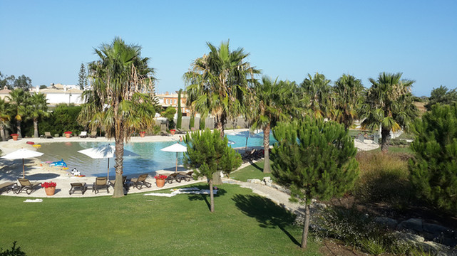下午五点半钟,到达拉古什外围,远远望去,山丘之上一片白色的建筑,拉古什似乎又像是一座现代化的小城。我们入住的级联健康及生活度假村(Cascade Wellness & Lifestyle Resort)在拉古什城外西南角,正好坐落蓬达彼达迪(Ponta da )岬角上。驾车沿着公路转了一圈,也没找到入住酒店的大门,后来才发现度假村是由一栋栋彼此独立的小楼房组成。