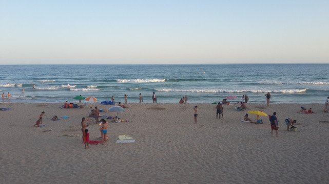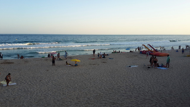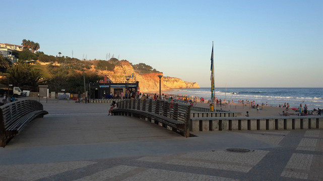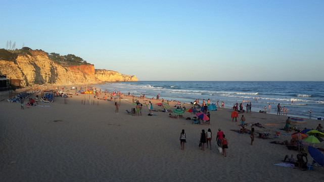 我们在超市买了些食品、水果,返回度假村吃罢午饭,我突然想起裤子还晾在卡米洛海滩小卖部的木架上呢。安德烈开车陪我重返海滩,一路尽说葡萄牙人爱贪小便宜,可能找不回来。虽然裤子价值不高,但是丢失会令人感到沮丧,影响整个旅途情绪。在忐忑不安中我们重新来到卡米洛海滩栈道,海滩上各个角落已经无空余位置,人们都在大海中寻找空间,我一眼就看见搭在小卖部木架上的裤子,心中石头终于落地。
